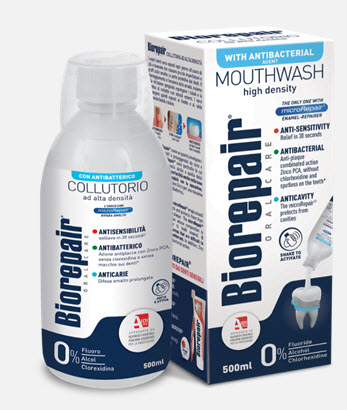 Biorepair vodice za ispiranje usta poseduju veliku gustinu, za koju je naučno provereno da pruža bolje prianjanje na zube, povećavajući efikasnost mikroRepair® čestica , Zn-PcA i ekstrakataiz biljaka hamamelisa, nevena i spiruline. Na taj način se povećava i snaga zaštitne barijere na gleđi i dentinu.Čestice pokrivaju zube kao rukavica, popravljaju ih i štite od karijesa i plaka. Velika gustina omogućava delimičan prodor komponenti vodice i u nepristipačne delove vilica gde ne doseže četkica (pre svega međuzubne prostore).